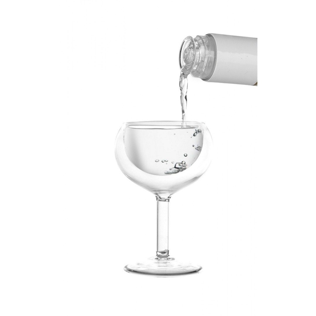 Kieliszek dzięki podwójnym ściankom z boro-krzemowego szkła utrzymuje odpowiednią temperaturę napoju, a unikalny kształt zapobiega wyślizgnięciu się z dłoni. Produkt w niezwykły sposób łączy cechy użytkowe z niebanalnym designem. Kieliszki idealnie nadają się na prezent, ponieważ łączą w sobie subtelną prostotę a zarazem odbiegają od standardu, wyróżniając się pomysłowo zaprojektowaną linią.