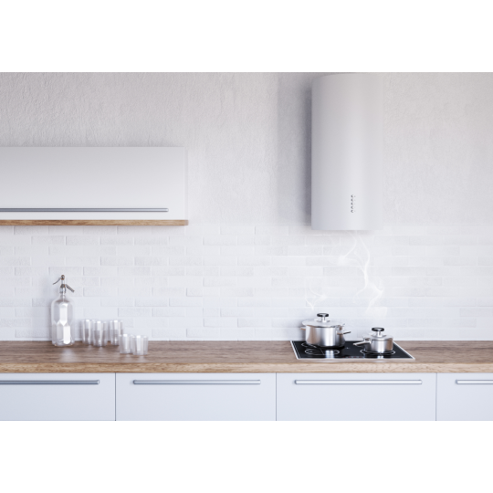 Okap kominowy, przyścienny Stil White to nowoczesne urządzenie w kształcie cylindra wykonanego z lakierowanej na biało nierdzewnej stali wysokiej klasy. Powłoka lakiernicza jest trwała oraz odporna na wysoką temperaturę, korozję, chemię i uszkodzenia mechaniczne. Na froncie urządzenia znalazły się eleganckie i dyskretne przyciski sterowania. Stil White posiada aż trzy zakresy prędkości i znakomitą wydajność na poziomie 648 m3/h, a przy zachowaniu bardzo cichej pracy turbiny. Okap wyposażyliśmy w oszczędne diody LED, które emitują ciepłe, przyjazne dla wzroku oświetlenie. Dzięki temu gotowanie i przygotowywanie posiłków będzie jeszcze wygodniejsze. Na uwagę zasługują kompaktowe wymiary urządzenia, w szczególności szerokość 38 cm i głębokości 47,5 cm, dzięki temu okap sprawdzi się nawet w mniejszych kuchniach, w których liczy się każdy centymetr powierzchni przechowywania.