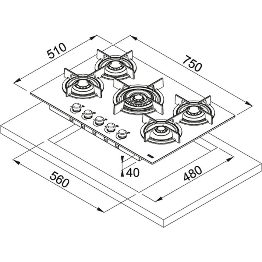 Franke płyta gazowa Crystal Black FHCR 755 4G TC HE BK C