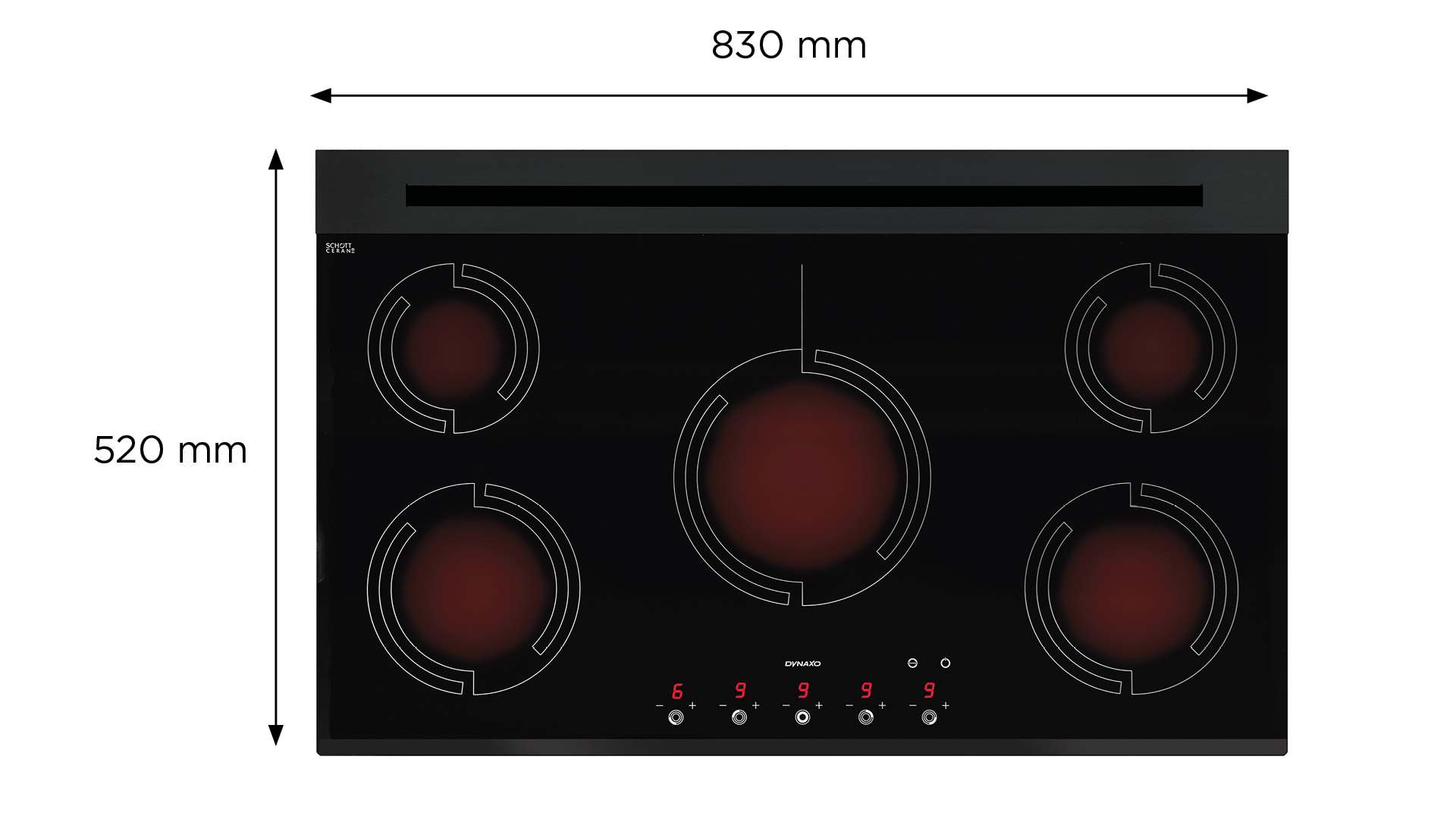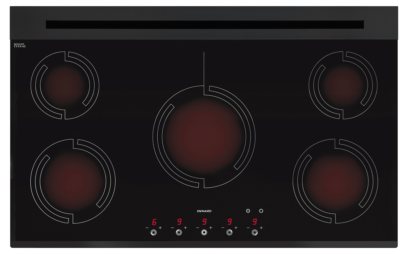 DynaCook X5 została wyposażona w 5 palniki (pola grzejne) najnowszej generacji typu Flexible Heating Zone (FHZ) oraz 18 poziomów (stopni mocy) gotowania. Parametry te czynią ją praktycznym wyborem do każdej zabudowy kuchennej.