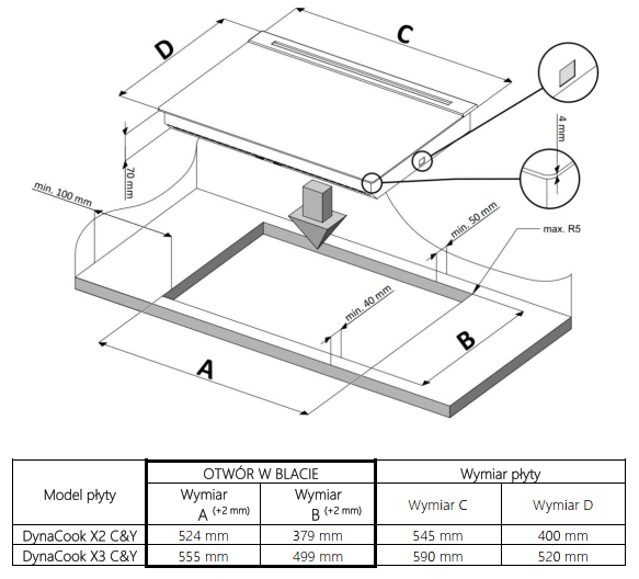 DynaCook X3 C&Y została wyposażona w 3 palniki (pola grzejne) najnowszej generacji typu Flexible Heating Zone (FHZ) oraz 18 poziomów (stopni mocy) gotowania. Parametry te czynią ją praktycznym wyborem do każdej zabudowie.